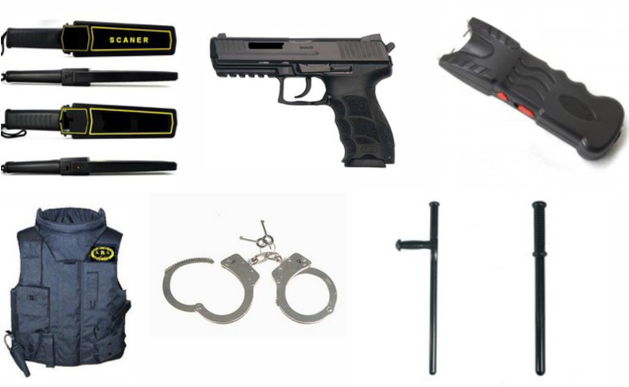 Pracovníci vykonávajúci ochranu sú vybavený podľa dôležitosti chráneného objektu, alebo požiadaviek objednávateľa služby technickými a vecnými bezpečnostnými prostriedkami (tomfa, obušok, putá, elektrický paralyzér, detektory kovov a pod).